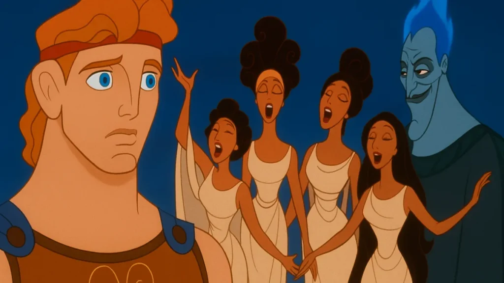 A Disney pegou elementos clássicos da mitologia grega e os recontextualizou para um público moderno. O resultado: uma história mais leve, personagens arquetípicos e sequências musicais contagiantes.