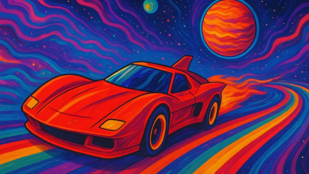 Edital de Concurso»Insights»Redline Takeshi Koike corrida espaço adrenalina visual psicodélico
